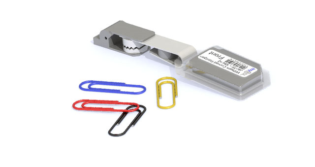 The holder can be equipped with a crocodile clip to attach the dosimeter to your coat pocket. A depression provides space for a label which can include a name, wearing period, barcode, company logo,